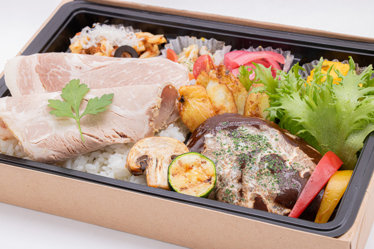 【専用】ハンバーグとローストポーク弁当 お茶付き